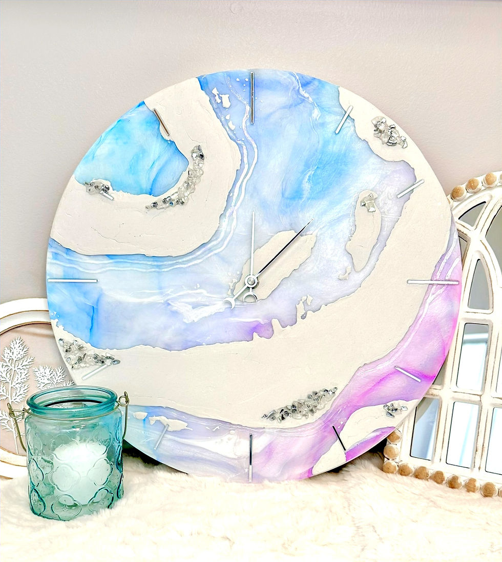 Handmade clocks made with beautiful and unique techniques. Perfect for adding a stylish and eye-catching addition to any room, making it a great conversation piece. The clock is easy to install and maintain, and its high-quality design ensures a long life. Make a statement in your home with one of these one of a kind artisan clocks.